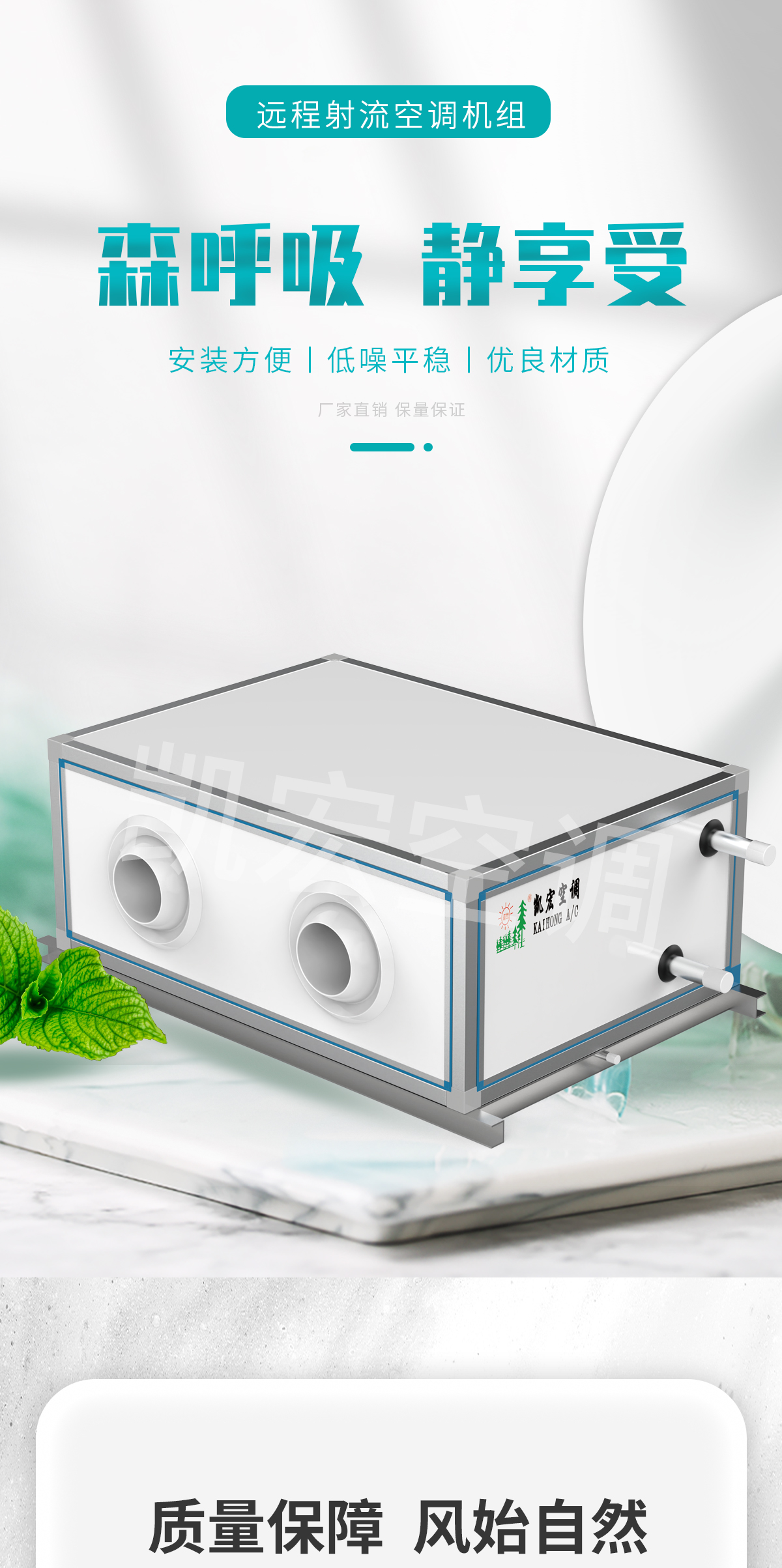 遠程射流空調機組主要由遠距離球形風口、高效換熱器、低噪音風機、過濾器、國際知名品牌壓縮機等構成。兼具可調形風口與球形噴口的特點。在實現遠距離送風的同時,又可滿足對氣流組織的調整 遠程噴射空調機組通過可變調流態球形噴口,實現冷熱送風的不同流形,使制冷和供暖在同一設備中完美兼顧。凱宏針對傳統空調熱風難送及溫度分層不均的難題,結合傳統球形噴口和旋流風口的特點,研制出新一代的空調機組,在實現距離送風的同時,又可調整氣流的流態 適用于生態酒店、養殖場所、種植場所、大型體育館、候車大廳、市場、展館、機場、超市、大型工業廠房等