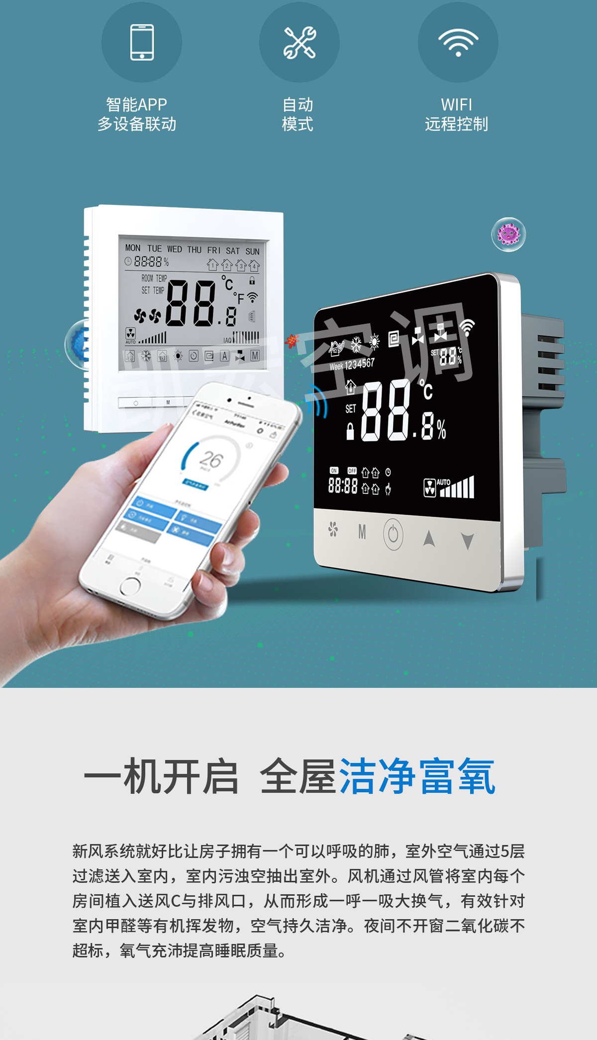 雙向換氣 室內(nèi)外氣體等量置換。獨(dú)特的熱交換器設(shè)計,把室內(nèi)污濁空氣與室外新鮮空完全分開,防止室內(nèi)外空氣交叉污染 靜音設(shè)計,安全可靠 內(nèi)置低噪音外轉(zhuǎn)子離心風(fēng)機(jī),機(jī)組璧覆有新型吸聲材料,運(yùn)行平穩(wěn)噪音低,防止了對現(xiàn)場的干擾。整機(jī)除風(fēng)機(jī)外無運(yùn)動部件,幾乎無需維護(hù),可確保長期穩(wěn)定可靠工作 過濾凈化功能 進(jìn)入室內(nèi)的空氣在機(jī)組中經(jīng)專業(yè)級過濾器過濾,有效防止灰塵和有害物質(zhì)進(jìn)入室內(nèi),保持室內(nèi)空氣新鮮,同時可選用靜電凈化器、負(fù)離子發(fā)生器、光觸媒等凈化設(shè)備