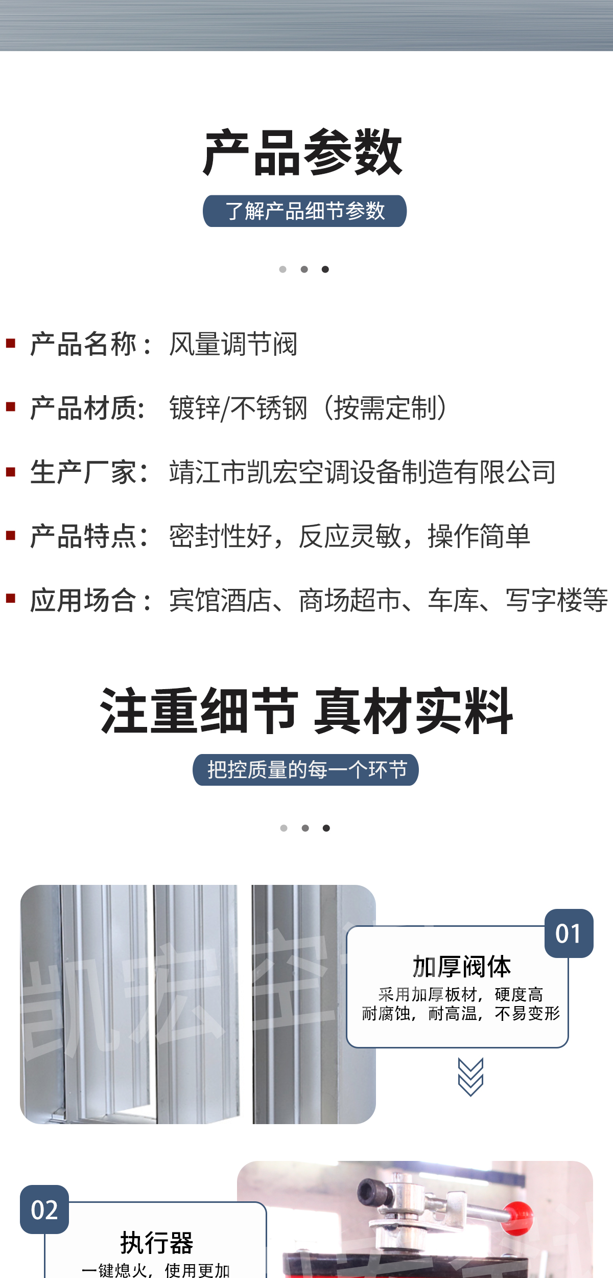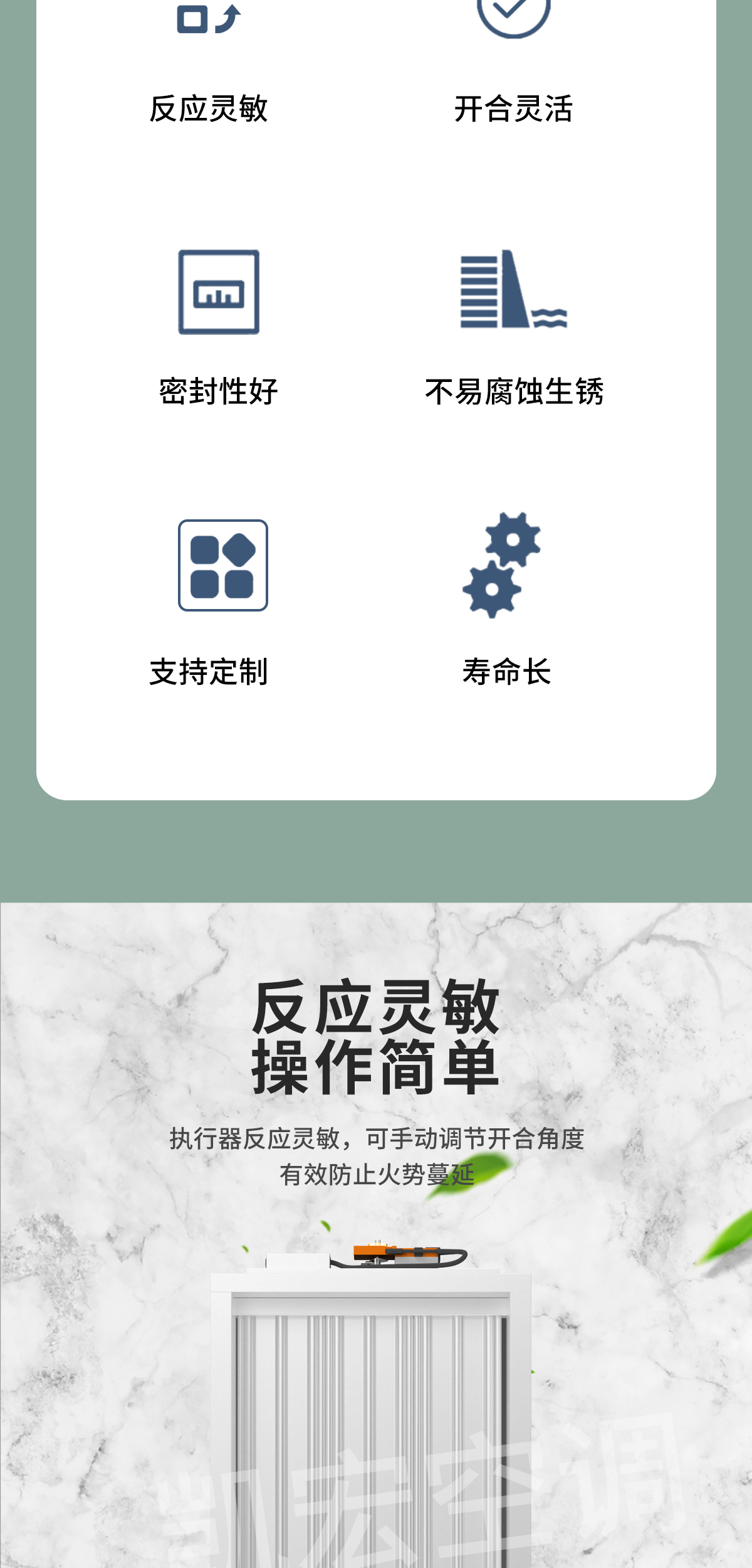 對開多葉風量調節(jié)閥一般用在空調通風系統(tǒng)管道中,用來調節(jié)支管的風量,也可用于新風與回風的混合調節(jié)。該閥分為手動和電動兩種,電動可以自動控制調節(jié)風量與自控系統(tǒng)配套。