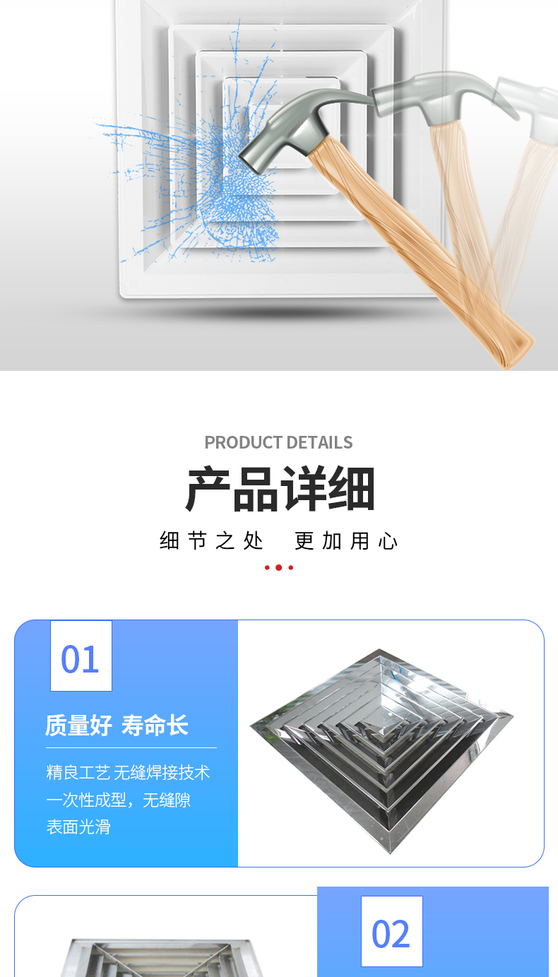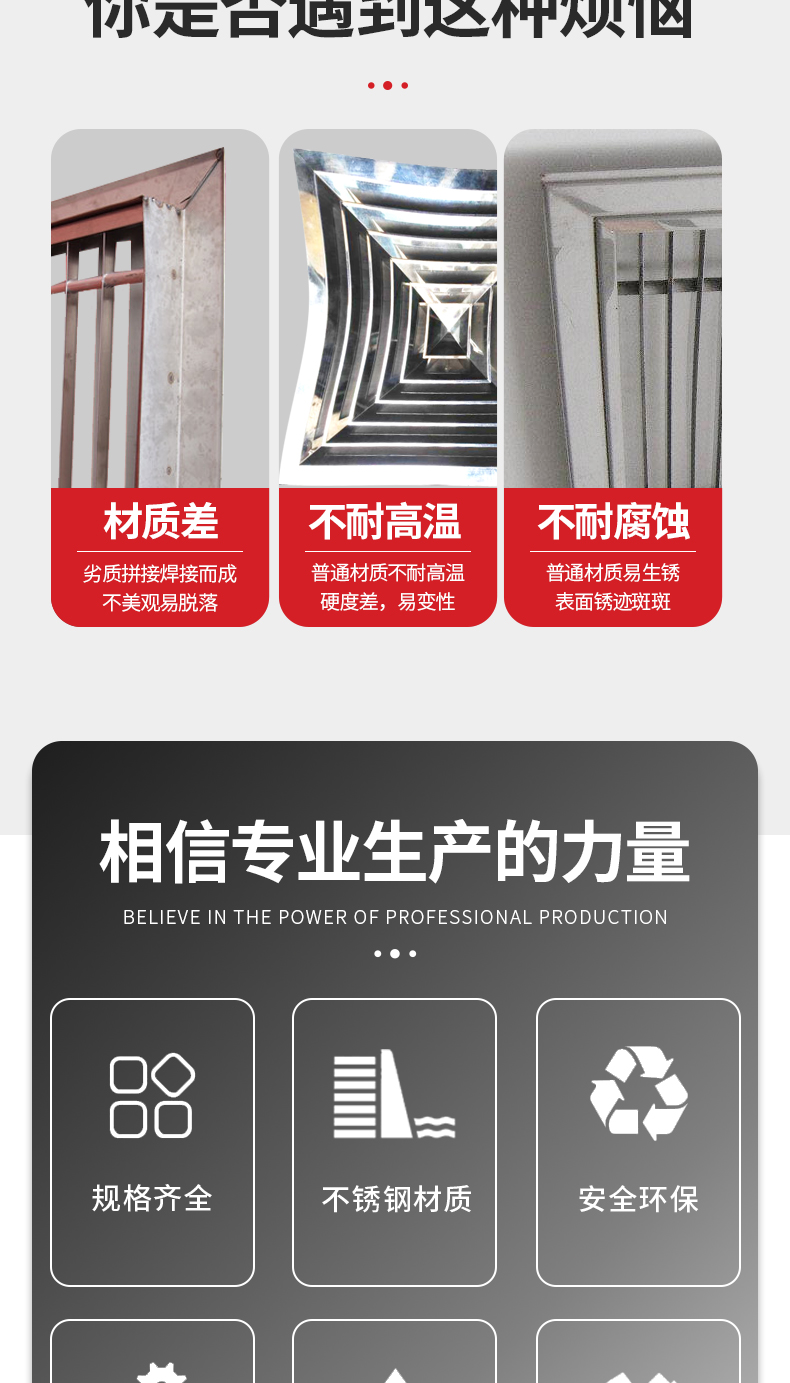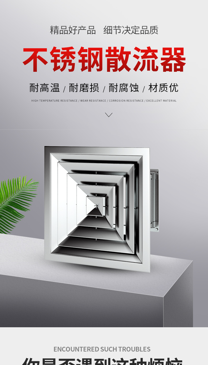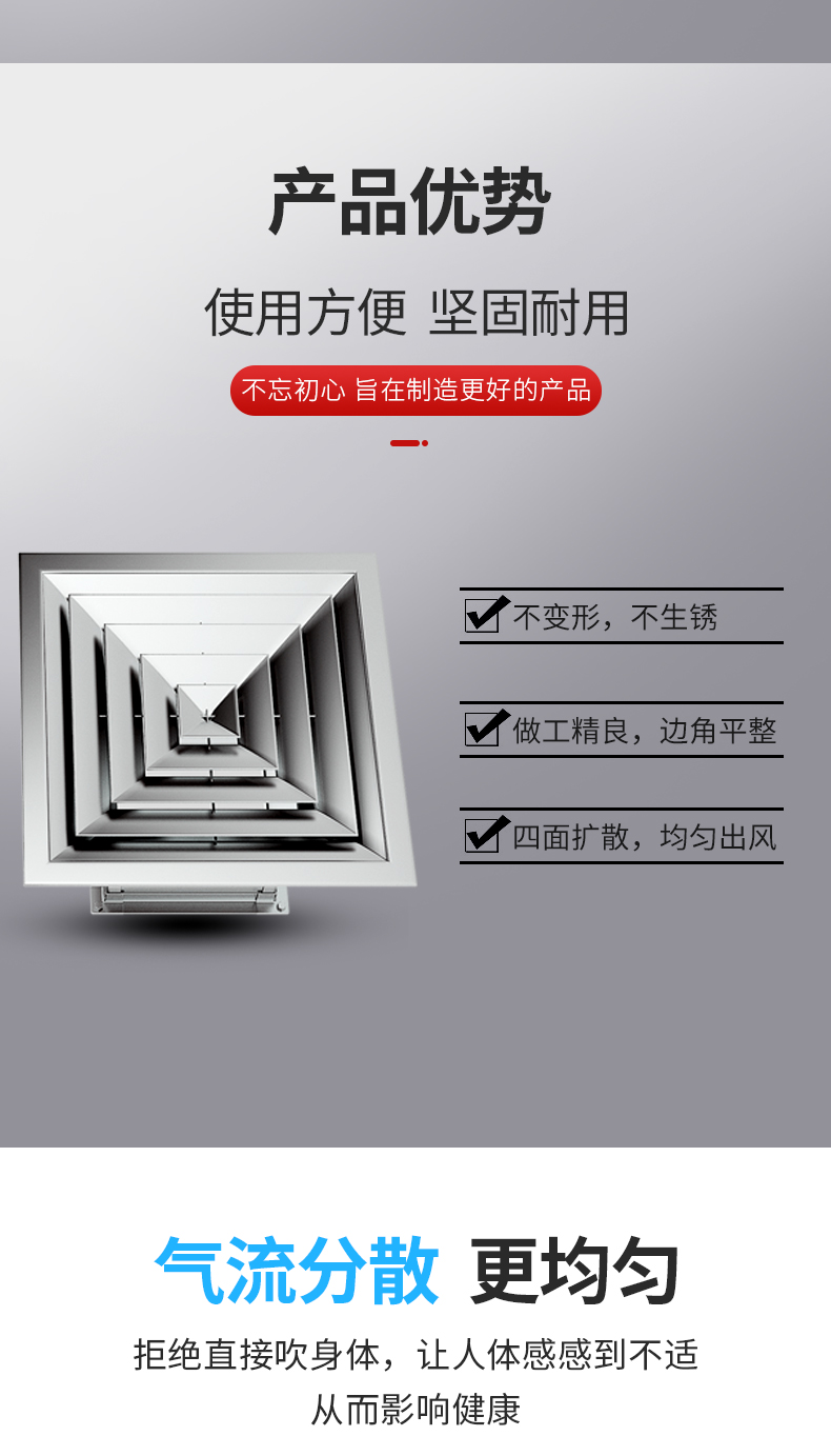 氣流型為貼附(平送型) 適用于吊頂送風(fēng)系統(tǒng) 按性能確定頸部的風(fēng)速,還需考慮安裝的高度及場合 中間葉片蕊可拆卸,便于安裝調(diào)試 尺寸由用戶選定