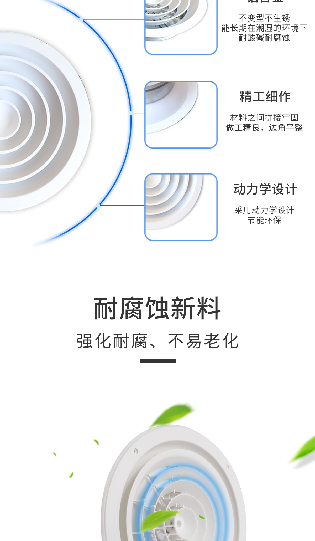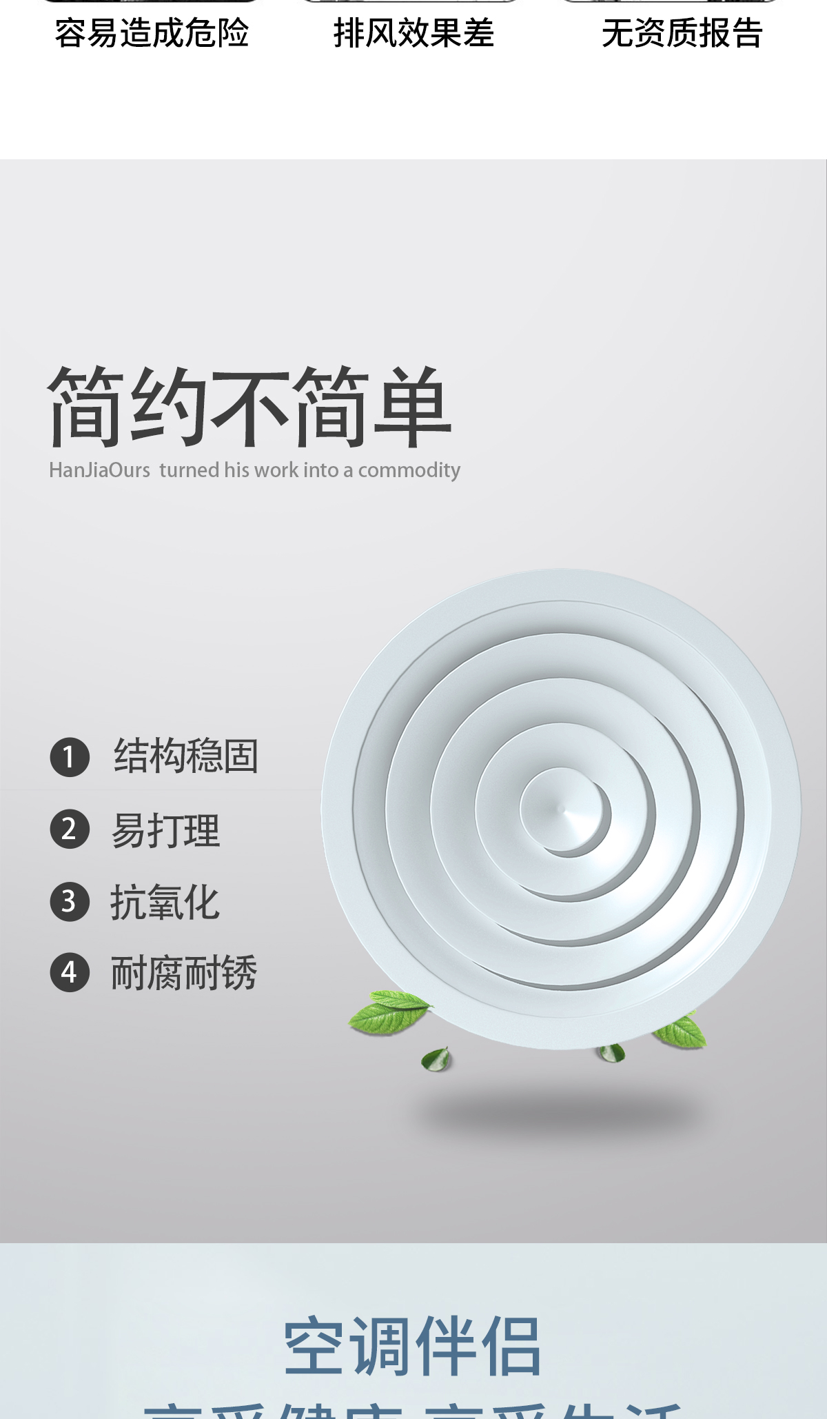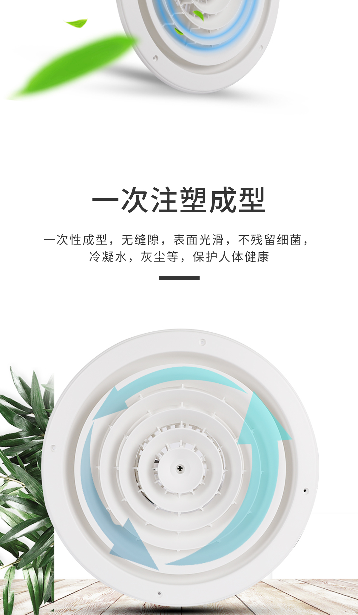用于冷暖送風,常安裝在頂棚上 吹出氣流呈貼附(平送)型 可以供給較大的風量 在給定風量范圍內擴散半徑可大小變化 可與圓形對開調節閥配套使用