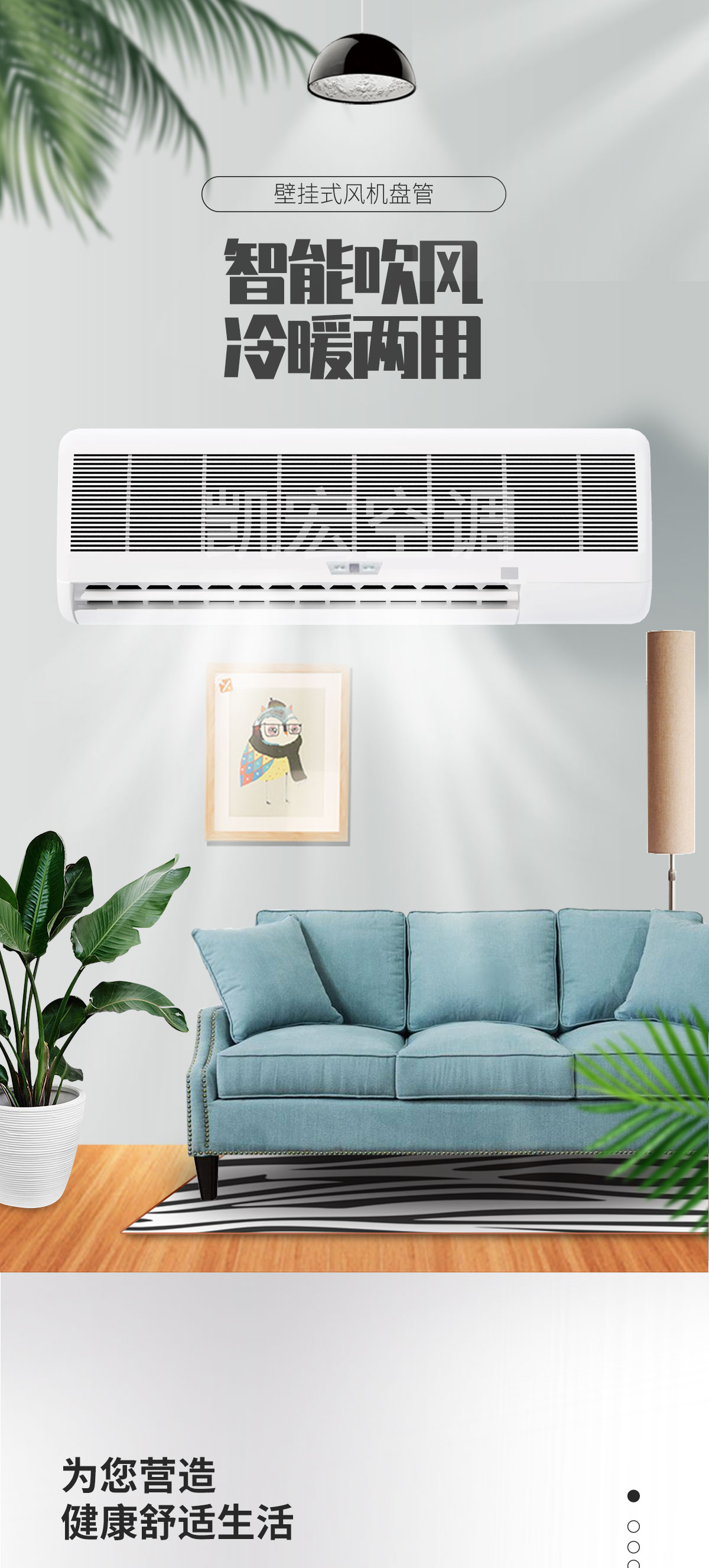 產品結構合理,特選吸音保溫材料,防火保溫。設計佳、體積小、占地少、重量輕、強度好,可方便地布置在任何地方 紅外無線遙控,全功能一觸即發,具有定時開關,溫度設定,三檔風速(高-中-低)自動調節,風向自動變換等功能 效率高,盤管采用優質無縫紫銅管與鋁質百葉窗型散熱翅片,經機械脹管確保翅片與銅管接觸緊密,發揮最佳傳熱效果 產品采用全面質量管理的生產體制,出廠前經嚴格的測試與檢測,特別是配有冷凝水盤及排水裝置,維修簡便